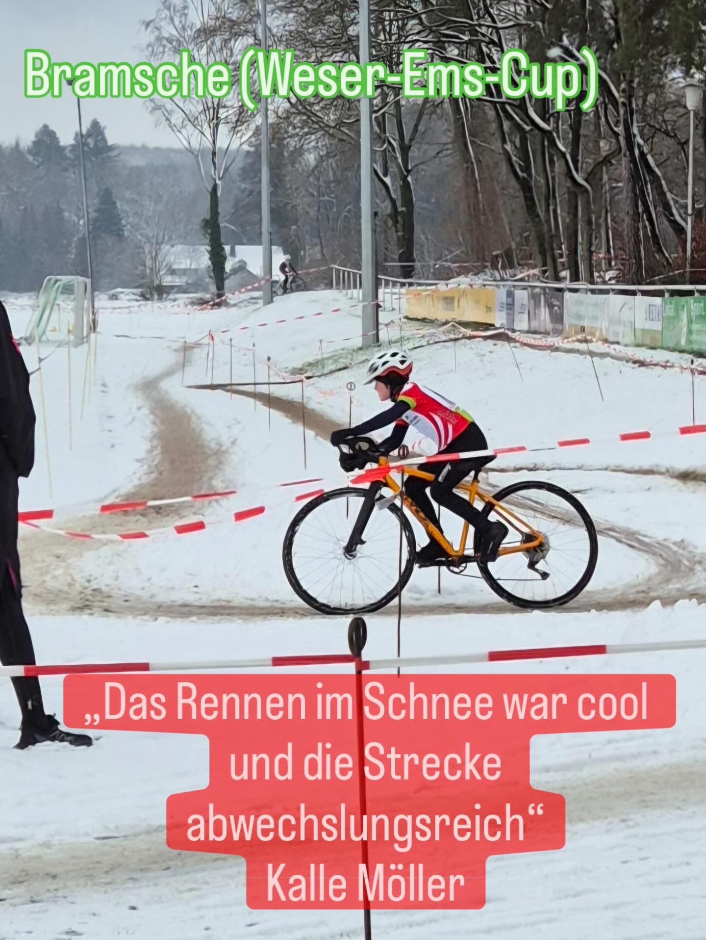 Das erste Rennen des Jahres 2026 in Bramsche fand unter völlig anderen Bedingungen statt. Schnee und gefrorene Böden auf einem weitläufigem Sportgelände mit einigen engen Passagen durch baumbewachsene Flächen.