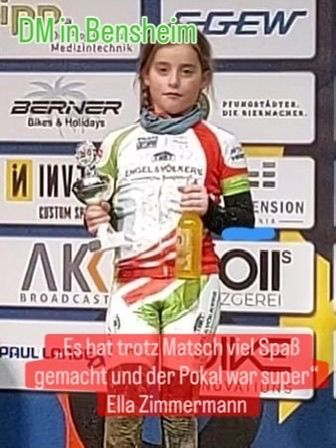 Bei den Mädchen in der U11 lieferten sich Ella Zimmermann und eine Bensheimer Fahrerin ein heißes Kopf an Kopf Rennen. Ella Zimmermann sicherte sich die Goldmedaille mit einer Sekunde Vorsprung. Als dritte Fahrerin kam Emma Zimmermann nach einem tollen Rennen ins Ziel und sicherte sich die Bronze Medaille.